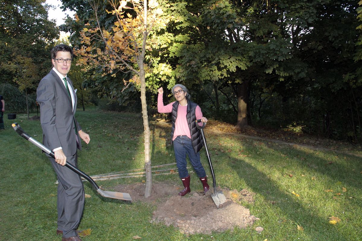 Kanadská velvyslankyně Ayesha Rekhi a radní Tomáš Hrdinka společně oslavili Den stromů