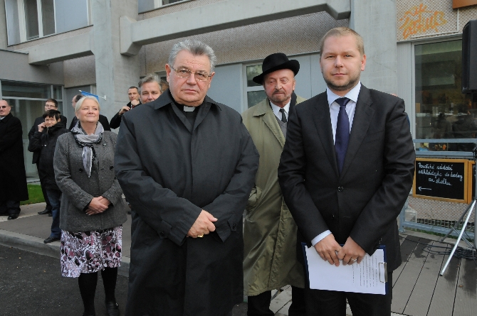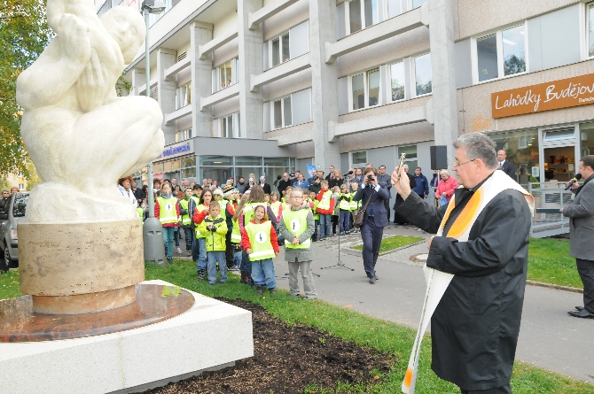 „Nestává se často, abychom měli příležitost zkrášlit veřejné prostranství uměleckým dílem, a nestává se často, abychom tak mohli učinit s požehnáním nejvyššího představitele katolické církve v České republice,“ uvedl starosta městské části Praha 4 Pavel Caldr. „Chci poděkovat autorovi sochy, panu Jaroslavu Kolomazníkovi, jehož dílo zkrášlí a jistě i polidští okolí Polikliniky Budějovická a úřadu městské části Praha 4. Všichni víme, že na své původní místo v ulici Antala Staška se plastika už bohužel vrátit nemohla, přesto věřím, že i toto místo je důstojným umístěním pro výjimečné umělecké dílo.“
