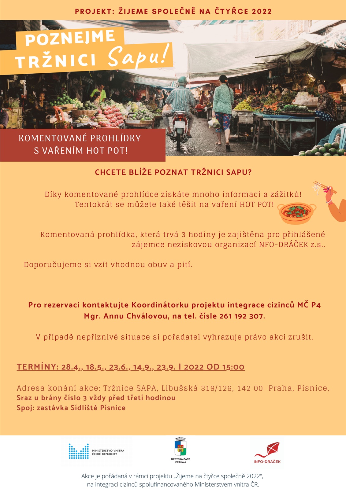 Městská část Praha 4 ve spolupráci s Neziskovou organizací INFO-DRÁČEK pořádá pět komentovaných prohlídek s vařením HOT POT v Tržnici Sapa.