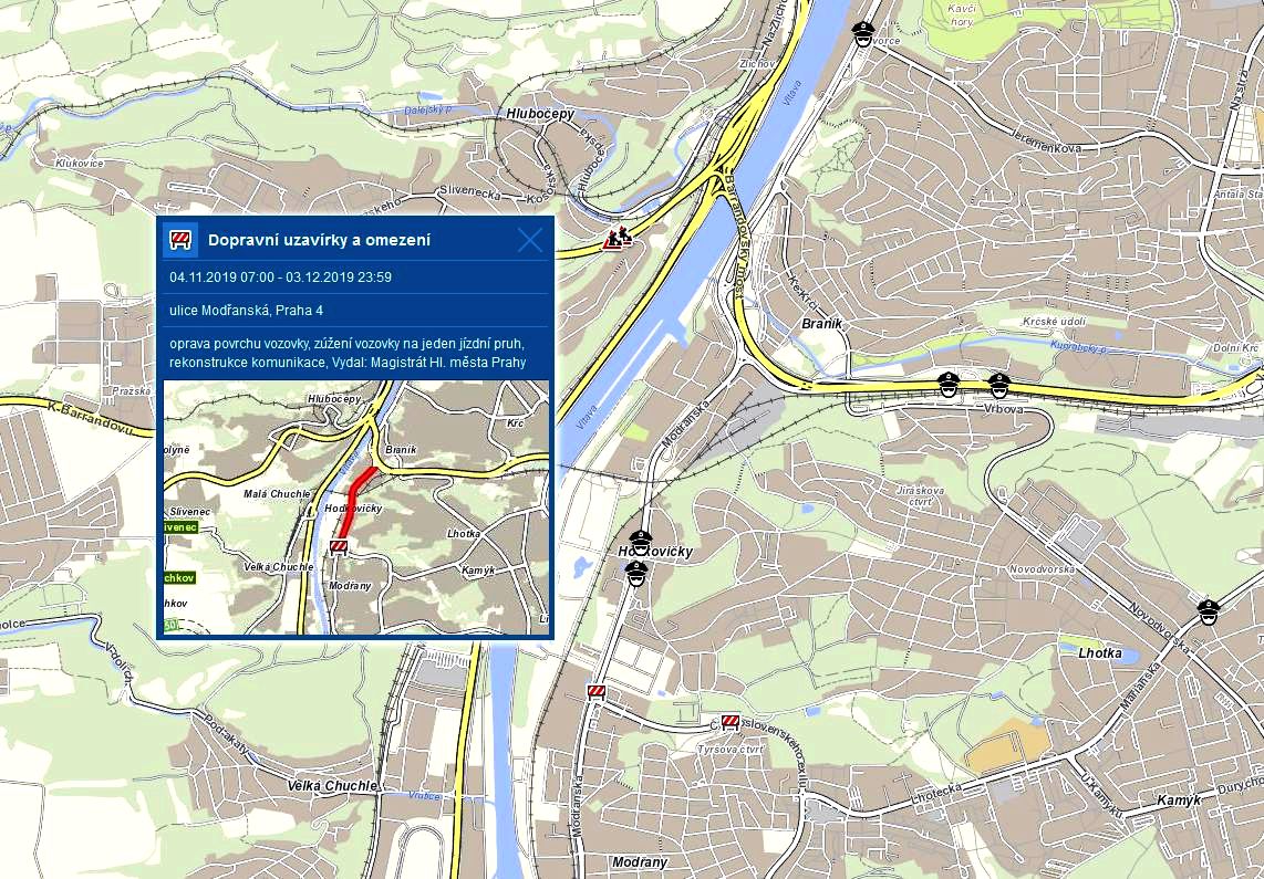V pondělí 4. listopadu 2019 zahájila Technická správa komunikací (TSK) souvislou údržbu ulice Modřanská v úseku Branický most – Branická. Tato významná komunikace dostane nejen nový povrch, ale současně TSK provede opravy přípojek uličních vpustí, rektifikaci povrchových znaků, lokální vyrovnání výškově a směrově vybočených obrub, opravy autobusových zastávek a k nim přilehlých nástupních ploch.