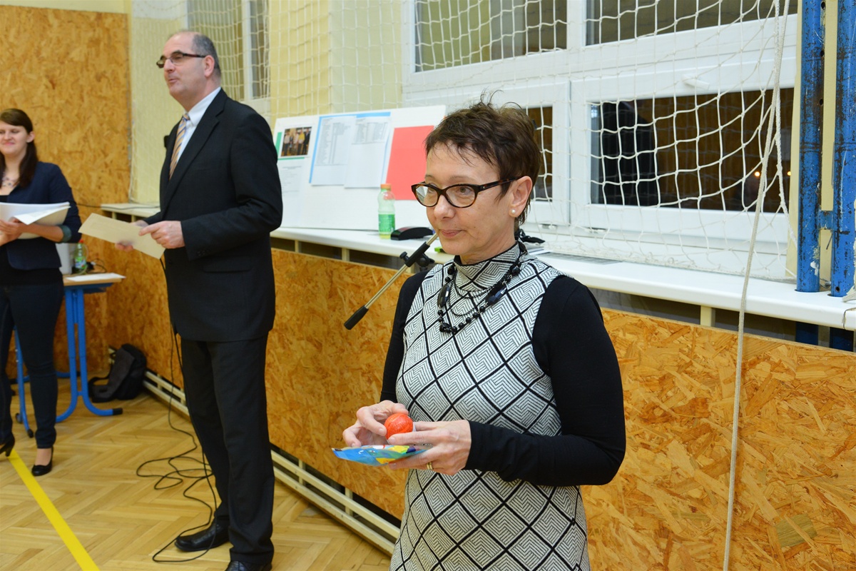 Blahopřání starosty Petra Štěpánka a radního pro oblast školství Jaroslava Mítha učitelce k získání ocenění Matematický Ámos 2015
