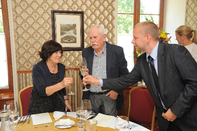 Oběd zástupců MČ Praha 4 s čestnými občany, paní Věnceslavou Hrdličkovou a panem Jaroslavem Hofrichtrem k jejich narozeninám