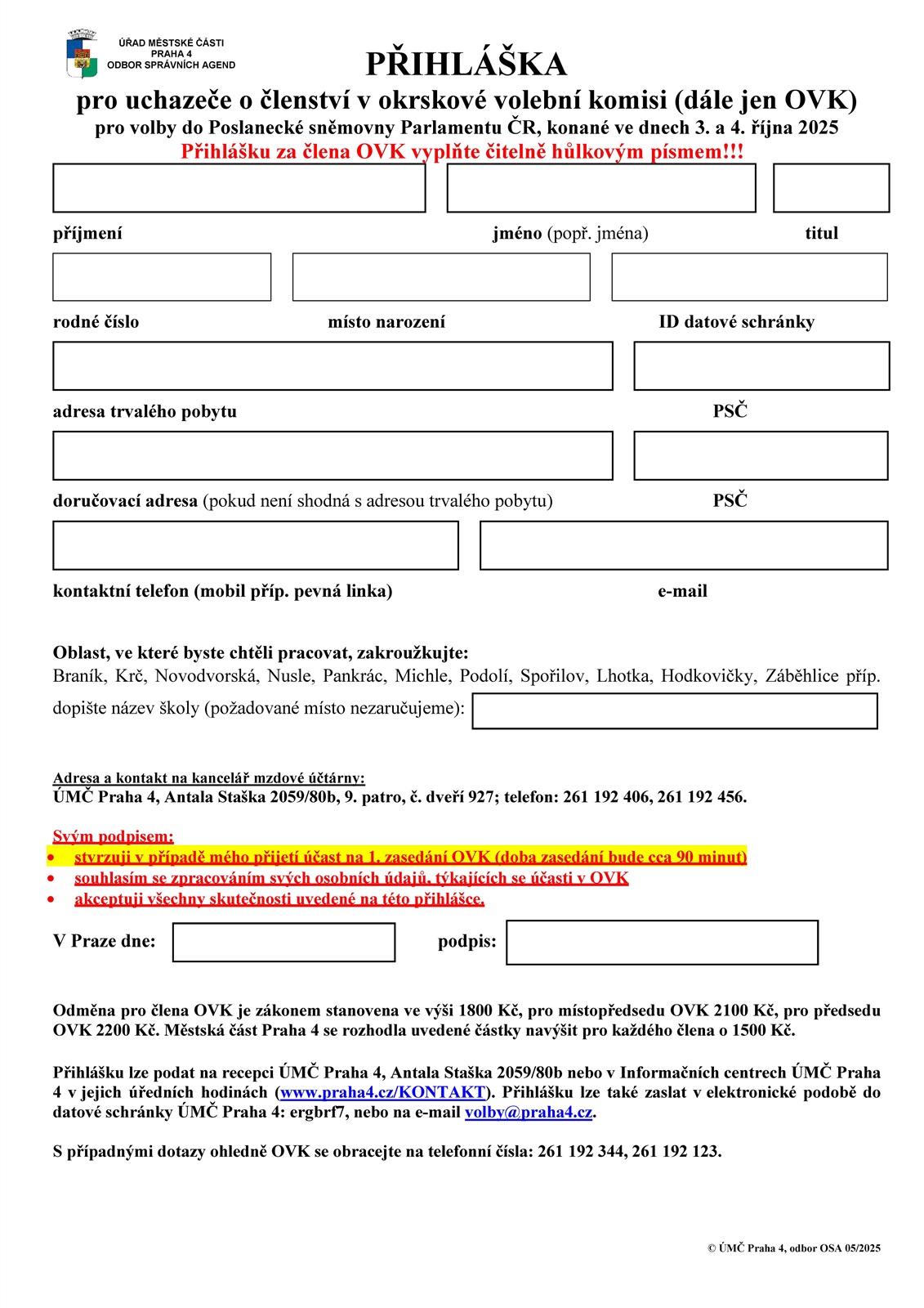 - přihlášku můžete také poslat na e-mail: volby@praha4.cz .