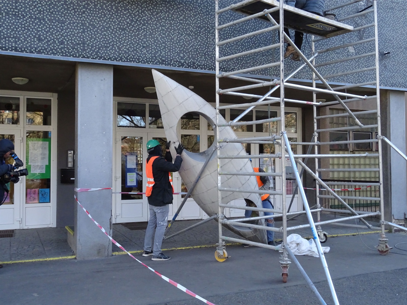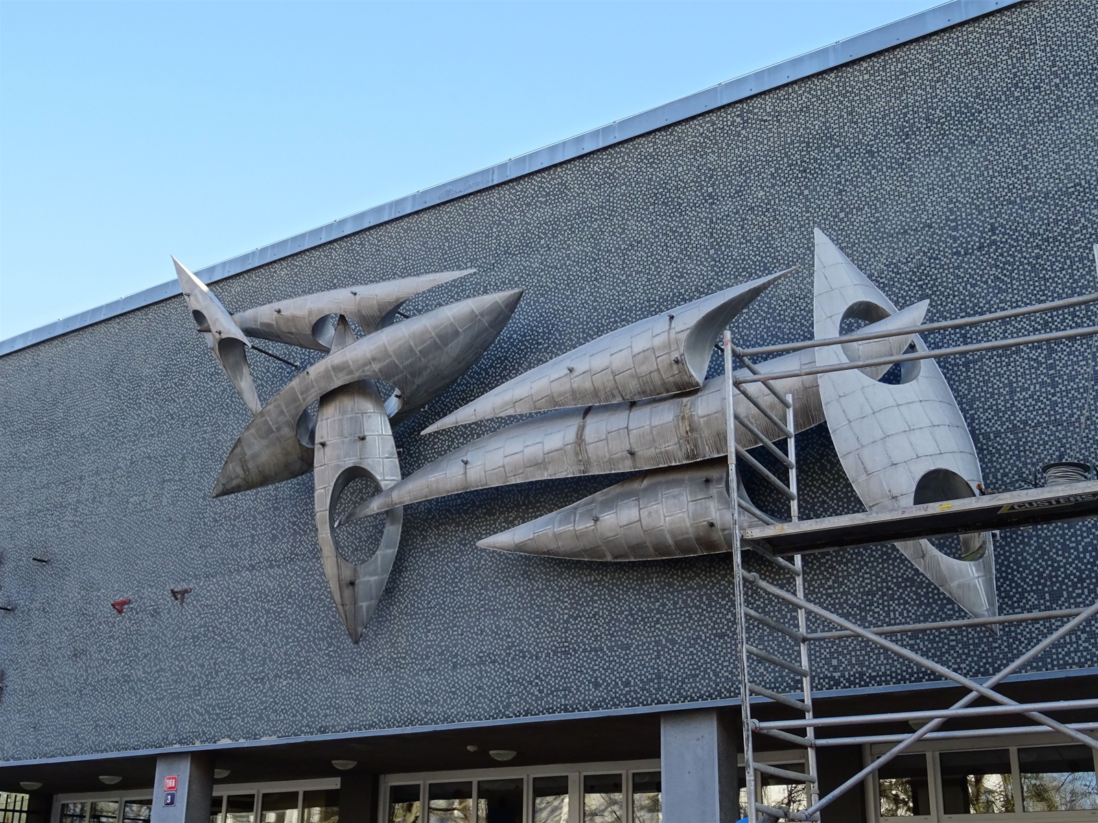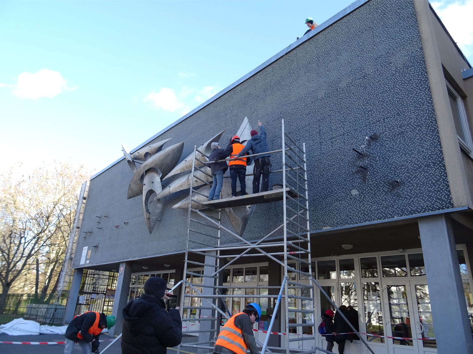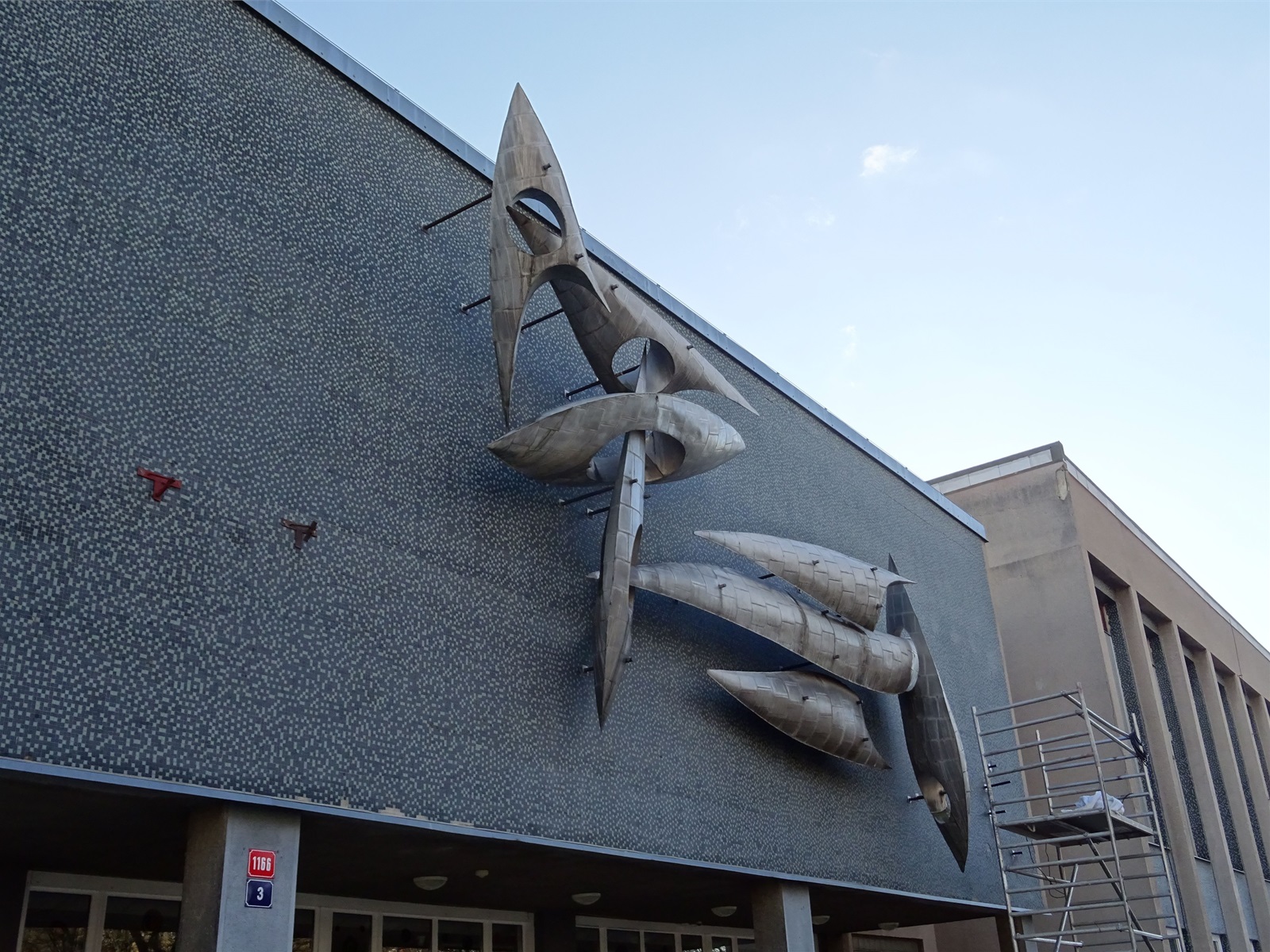 Plastika Vazby se po restaurování vrátí zpět na fasádu ZŠ Filosofská