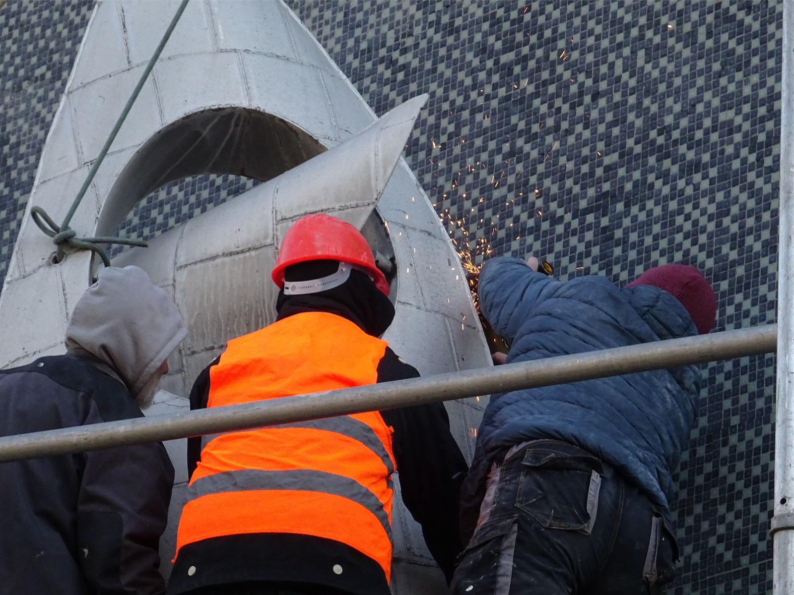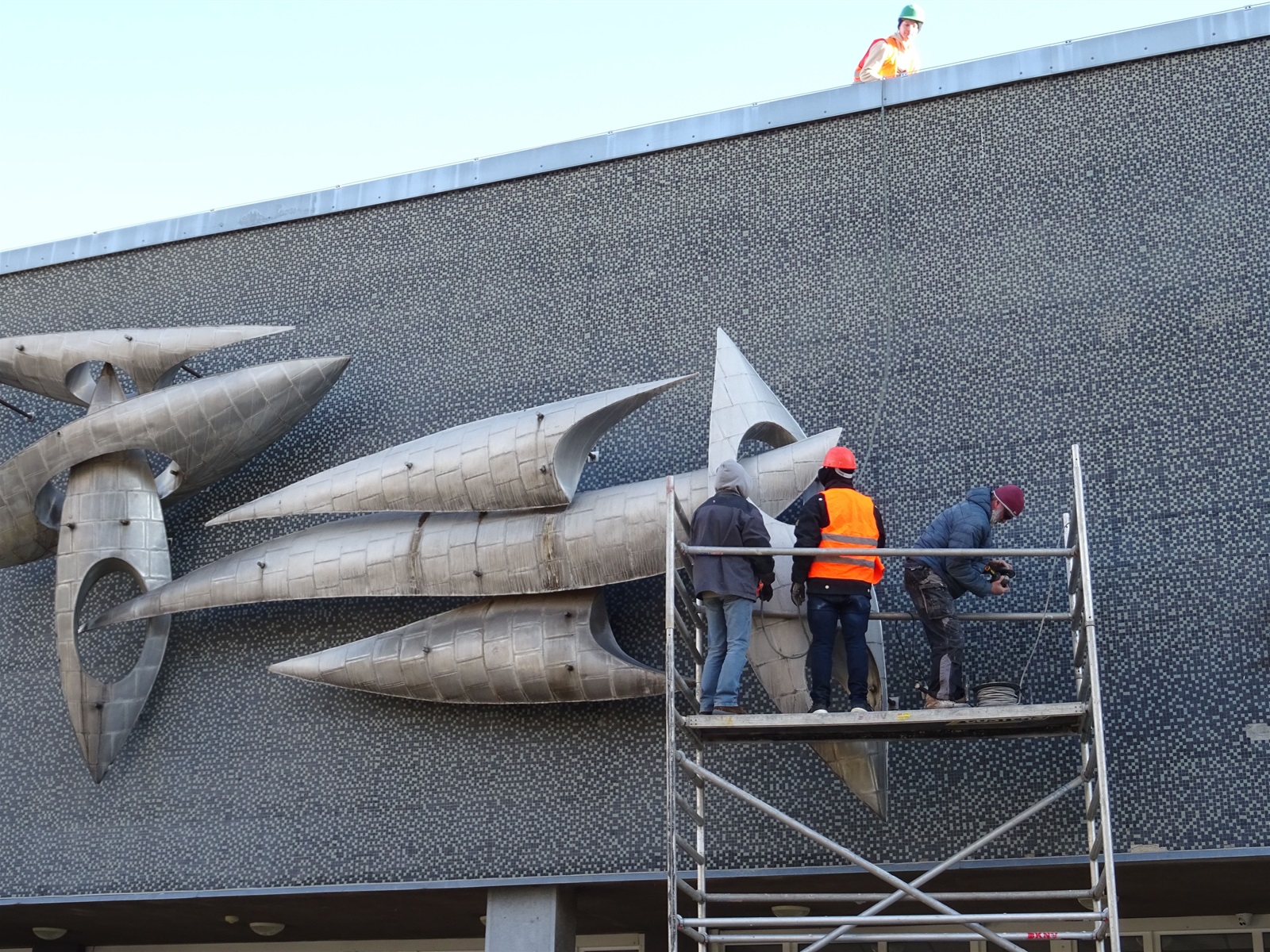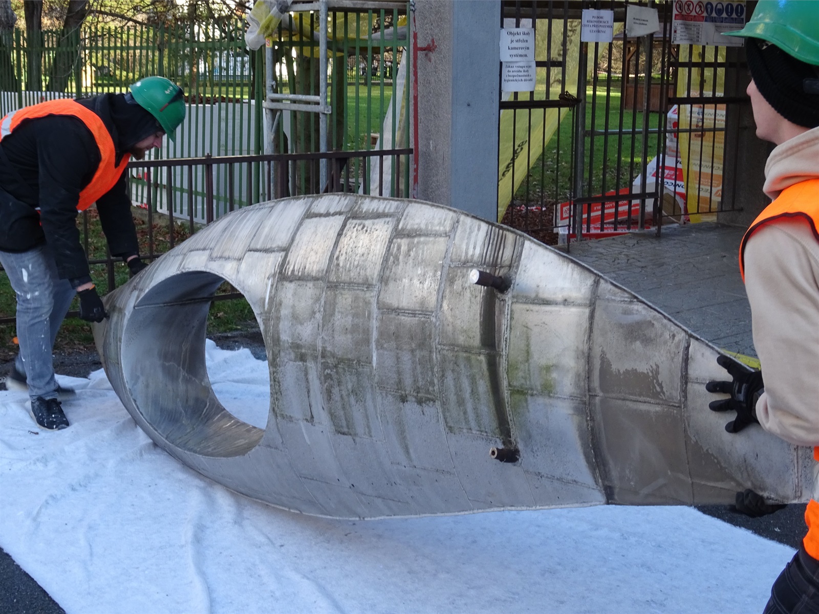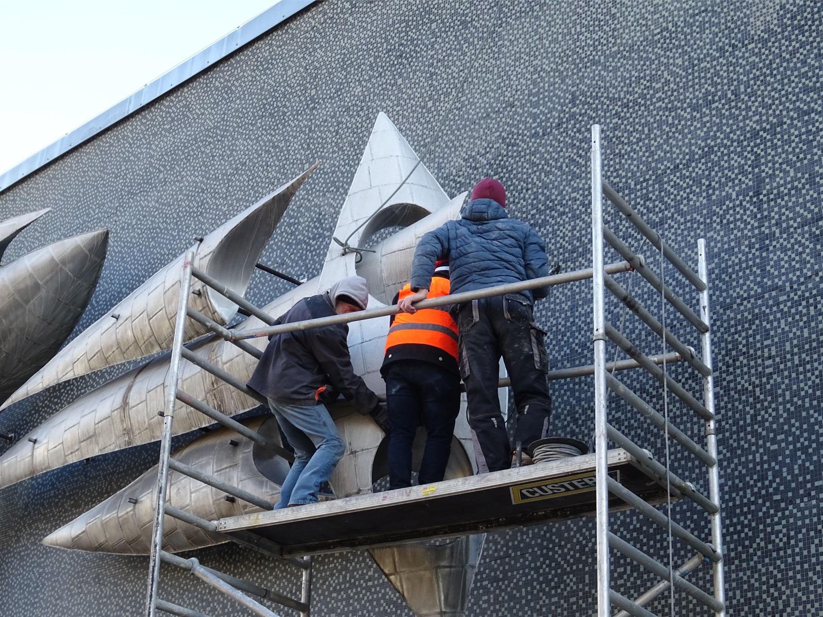 Plastika Vazby se po restaurování vrátí zpět na fasádu ZŠ Filosofská