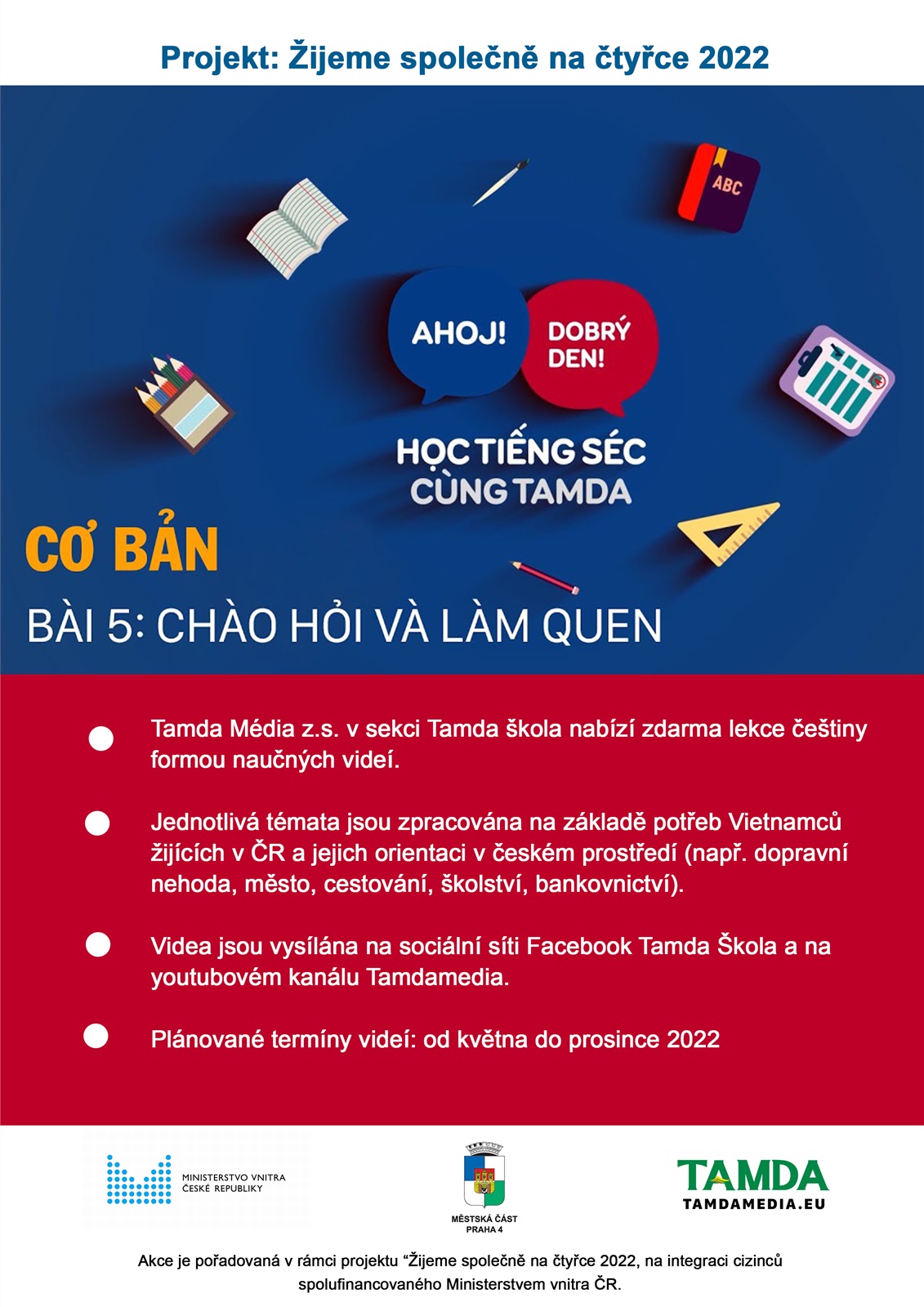Tato aktivita je pořádaná v rámci projektu „Žijeme na čtyřce společně 2022“, který se zaměřuje na integraci cizinců a je spolufinancován Ministerstvem vnitra ČR a městskou částí Praha 4.