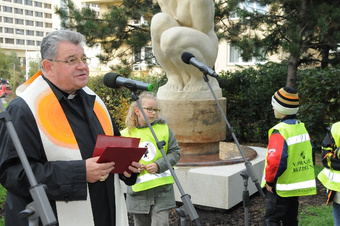 Vzpomínkové shromáždění na pietním místě na Roztylském náměstí na Spořilově