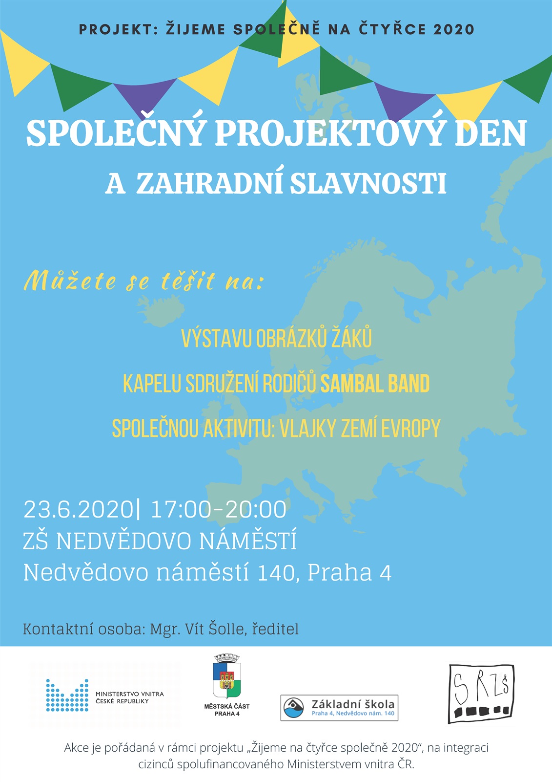 Společný projektový den a zahradní slavnosti - 23. 6. 2020 v době od 17 do 20 hod. ZŠ Nedvědovo náměstí - Nedvědovo náměstí 140, Praha 4.