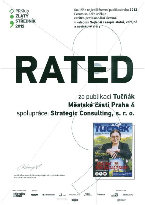 Tučňák, měsíčník městské části Praha 4, získal ocenění "Razítko profesionální úrovně" v profesní soutěži Zlatý středník 2012 vyhlašované od roku 2002 každoročně PR Klubem, který sdružuje fyzické osoby poskytující služby nebo se zajímající o oblast public relations. Uspěl v kategorii časopisů státní, veřejné a neziskové sféry.