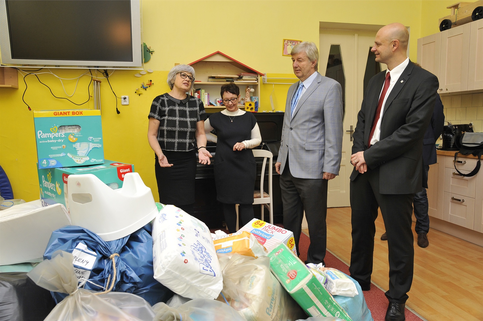 Předání pěti repasovaných počítačů pěti pěstounským rodinám z Prahy 4