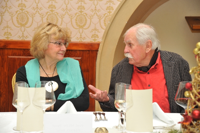 Oběd zástupců MČ Praha 4 s čestnými občany, paní Věnceslavou Hrdličkovou a panem Jaroslavem Hofrichtrem k jejich narozeninám