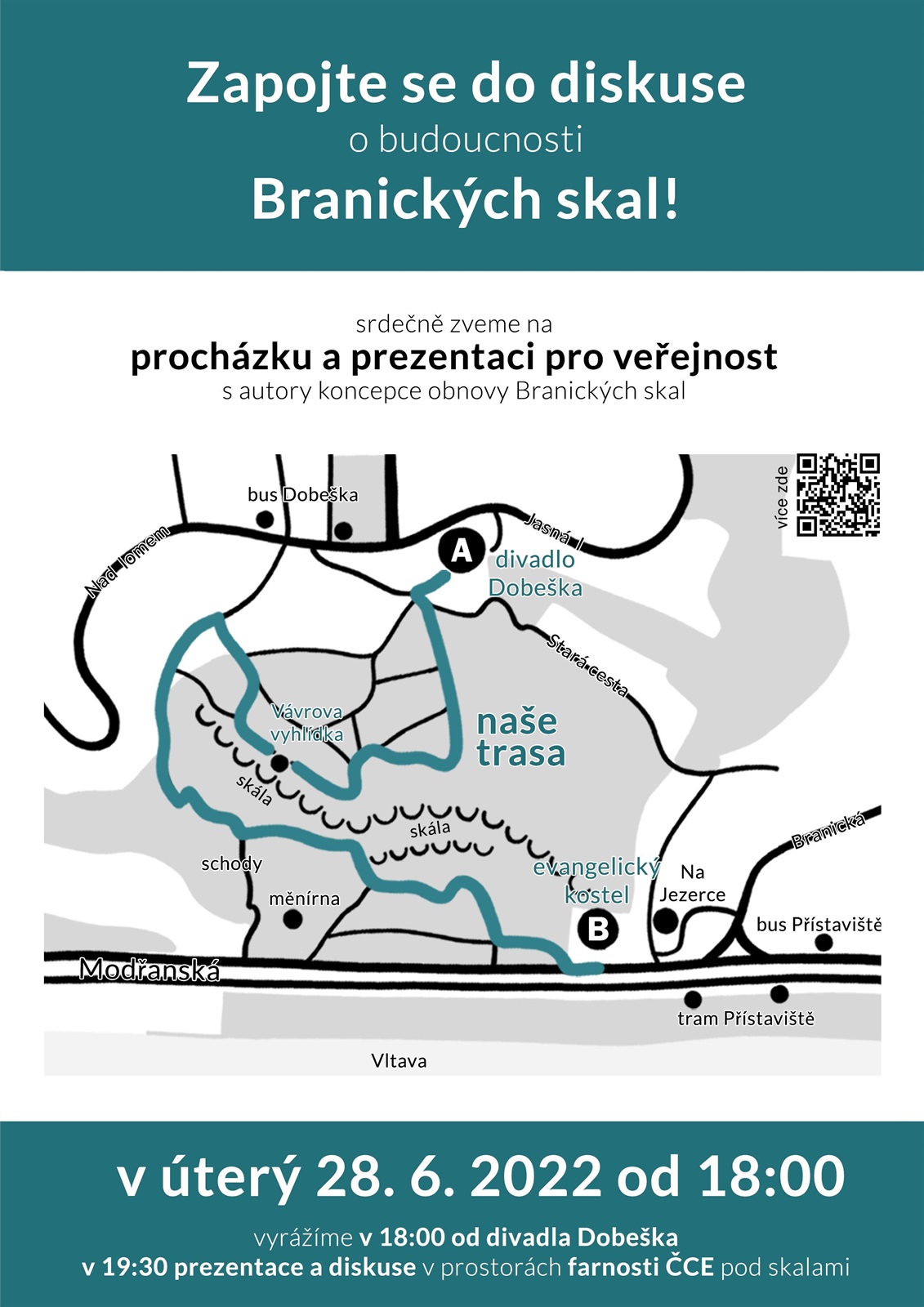 Účastníci komentované procházky, vedené zpracovateli generelu, vyrazí v úterý 28. 6. 2022 v 18:00 od divadla Dobeška. Procházka bude zakončena prezentací a diskusí v klubovně farnosti ČCE pod skalami v 19:30 hod. Plakátek ke stáhnutí po kliknutí na jeho obrázek níže.